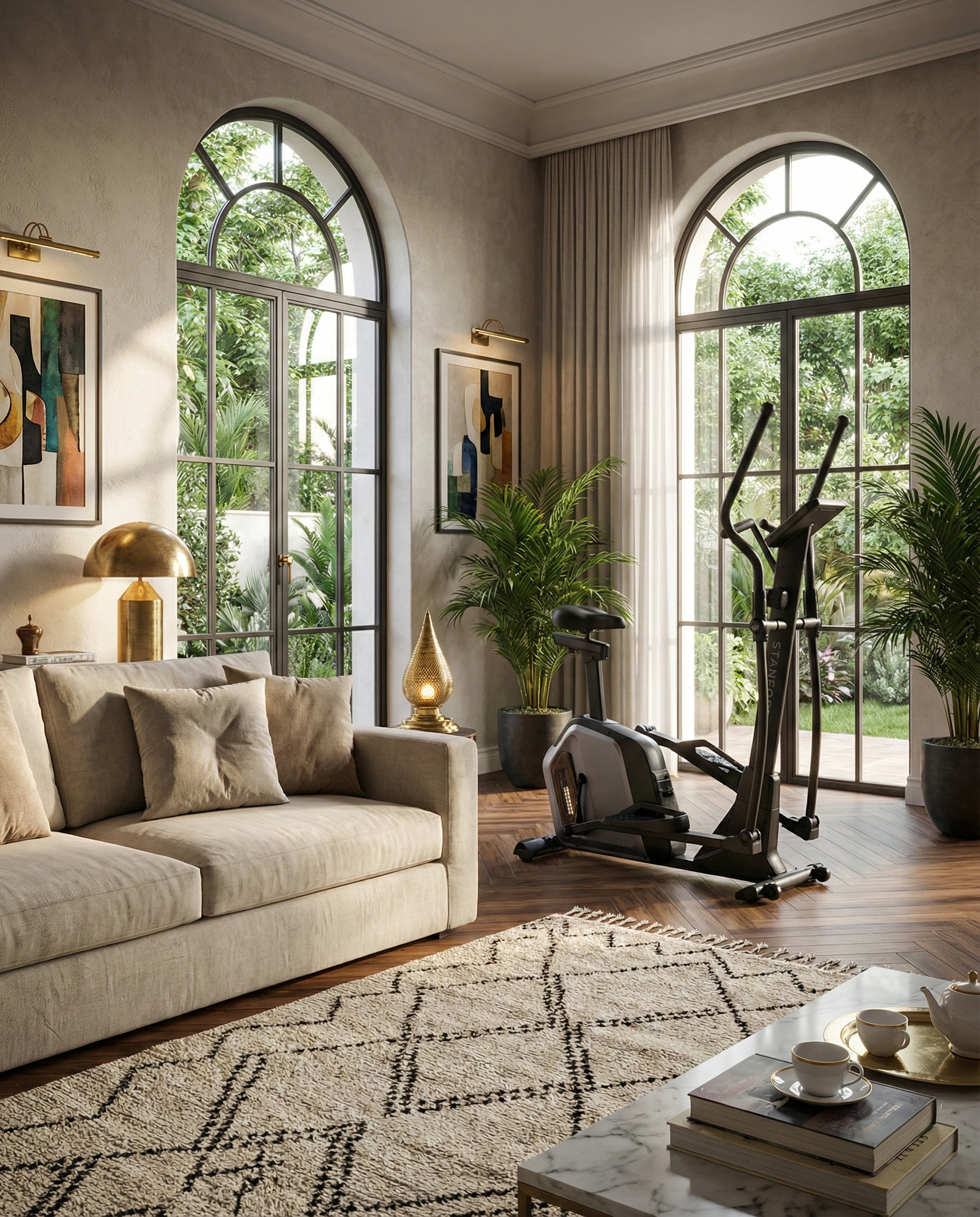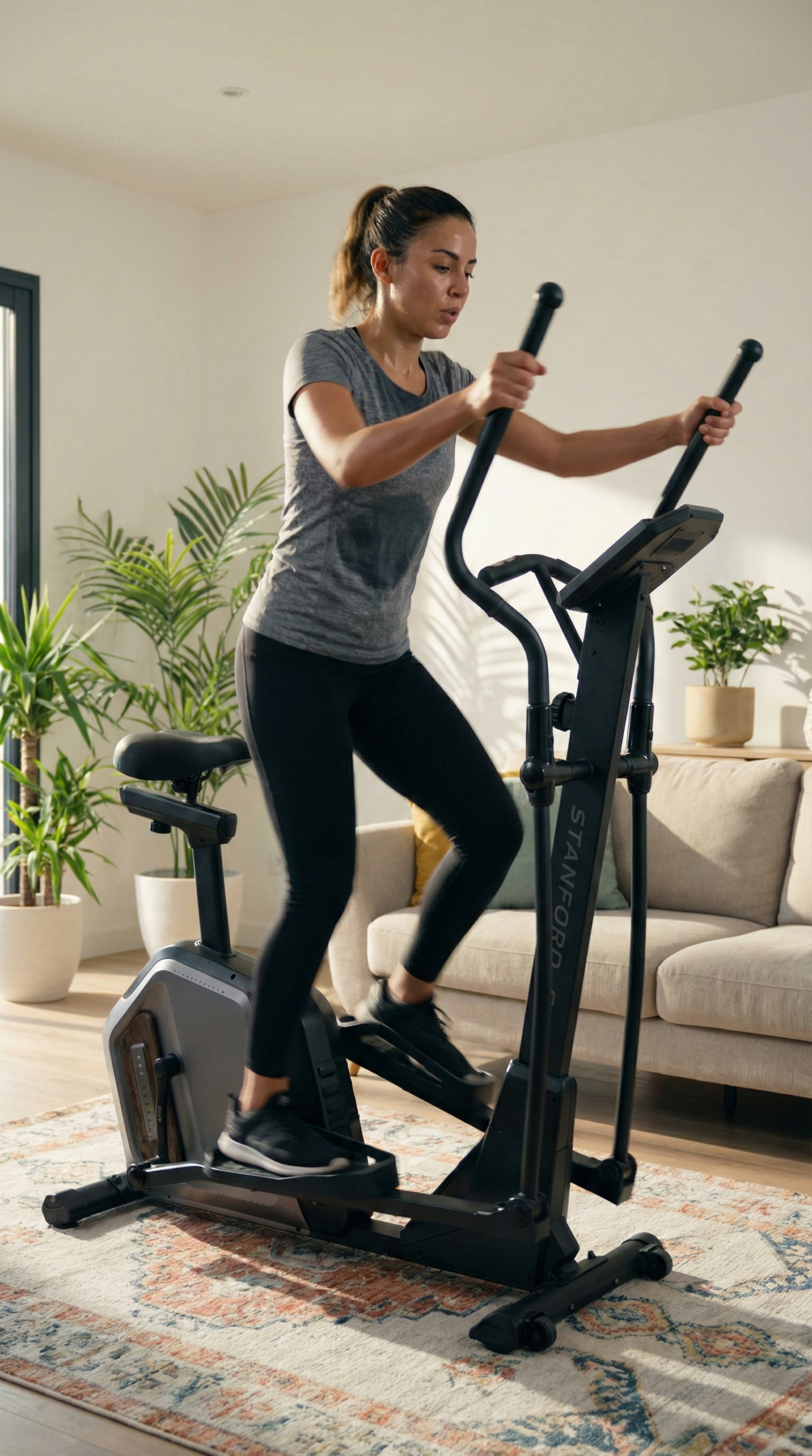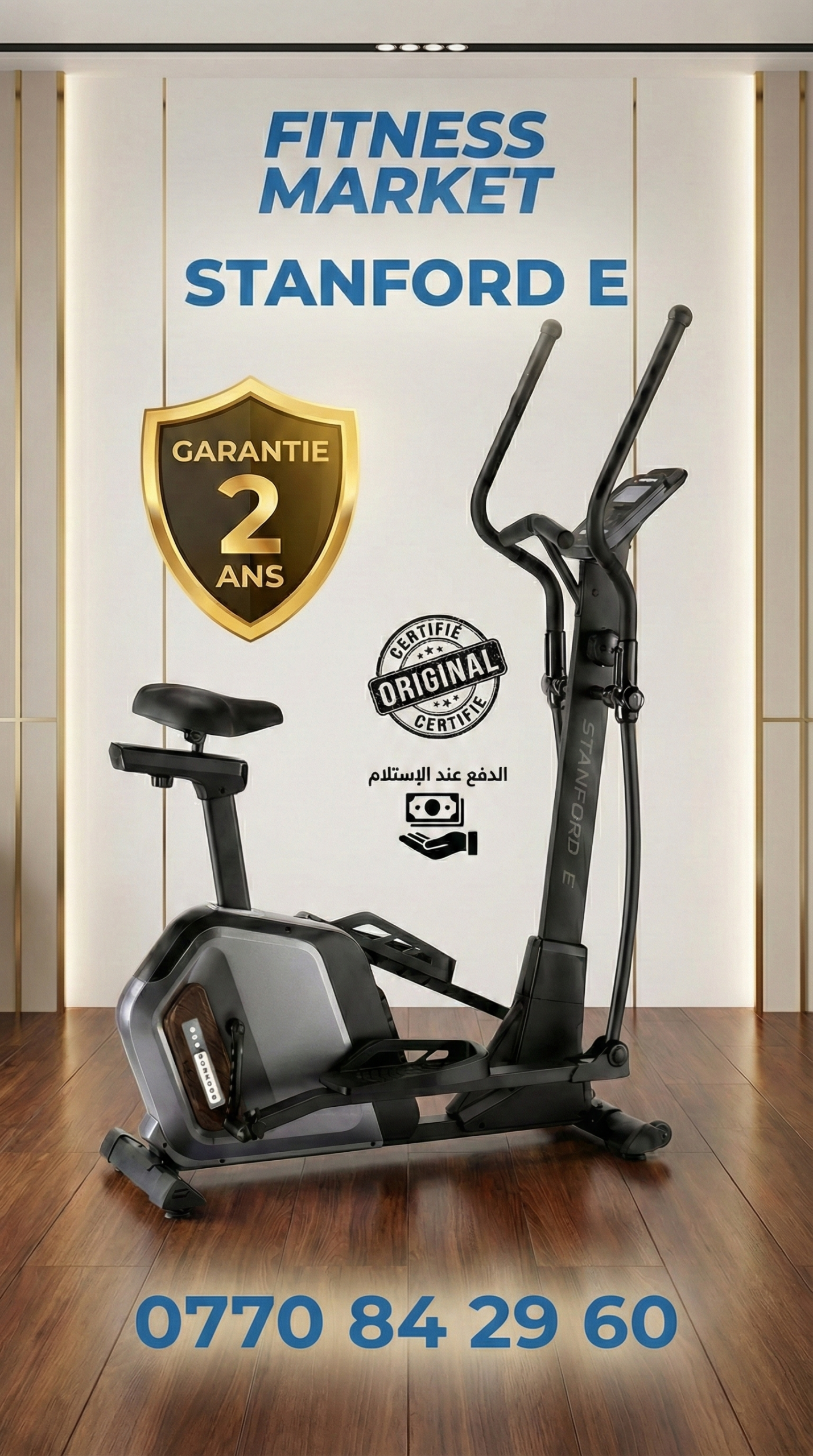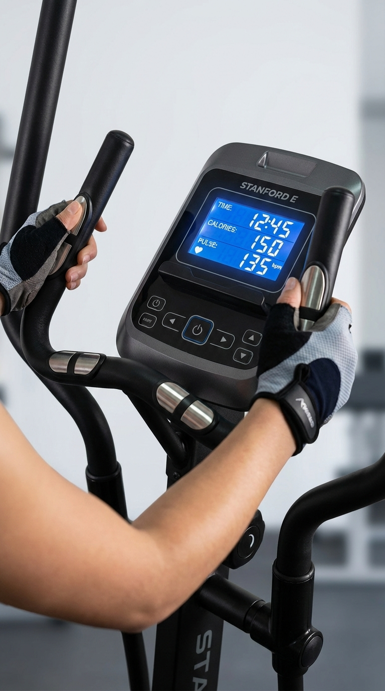 جهاز **Stanford E** مصمم خصيصاً ليمنحك حركة رياضية آمنة ومريحة. إنه الحل المثالي لتنشيط الدورة الدموية وتقوية عضلات القلب **دون أي إجهاد أو ضرر للمفاصل** (الركبتين، الظهر). استمتع بجهاز صلب وثابت يمنحك راحة البال أثناء التمرين.